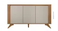 Buffet Cinamomo Off White é um móvel de apoio em madeira de qualidade, com acabamento suave que valoriza qualquer ambiente. Possui espaço interno com prateleiras ajustáveis e duas portas, além de área superior para servir bebidas. Design retrô-moderno, pés inclinados e acabamento durável, unindo organização e estilo em salas de jantar, estar ou cozinha.